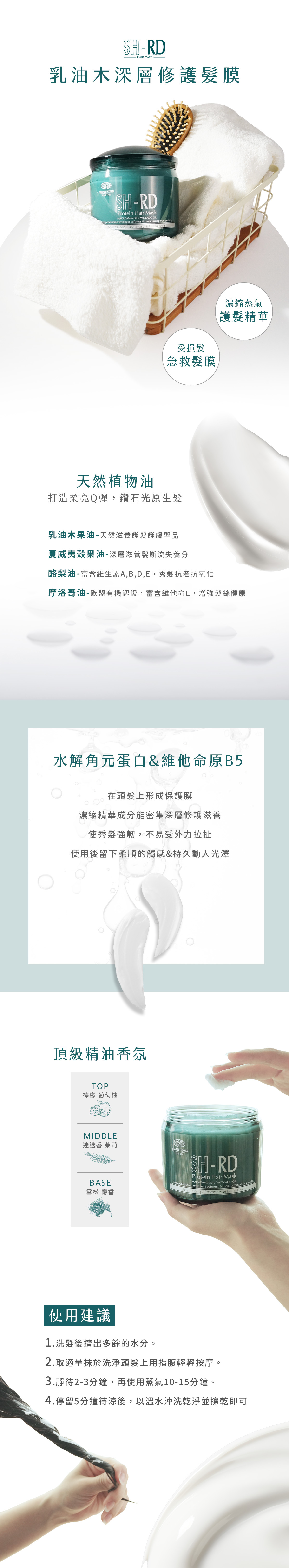 2. 取適量均勻塗抹在髮中至髮尾處
