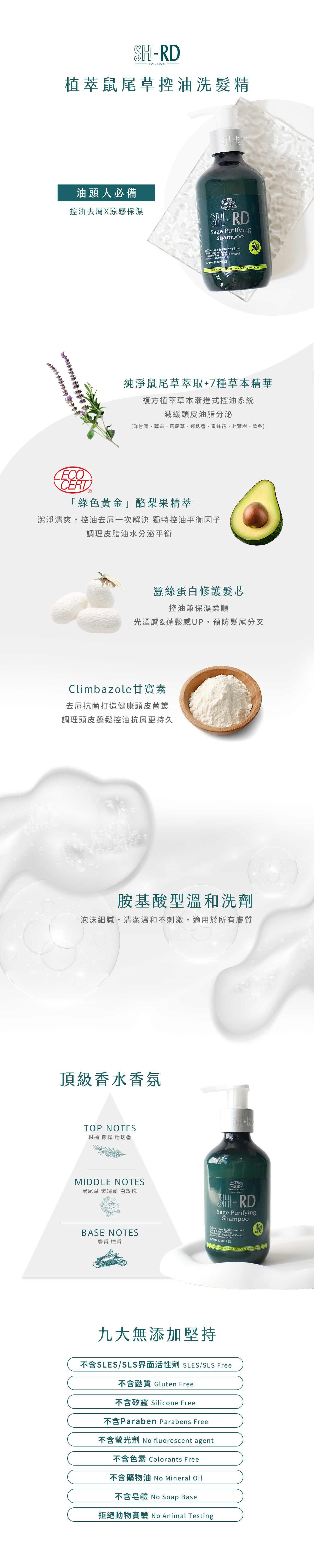 ✨ 7重草本漸進式控油 × 歐盟認證酪梨果分解油垢,洗髮精深層淨化毛囊,平衡素封鎖清爽感!